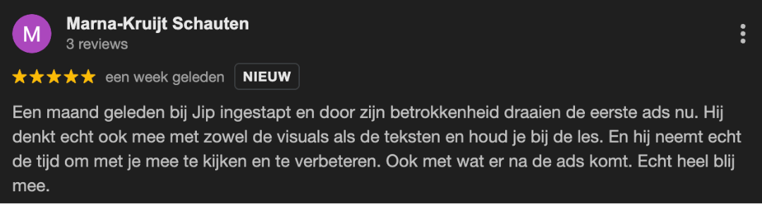 Als kers op de taart krijg je ook nog 1 gratis coachingscall erbij, waarbij Jip in jouw advertentieaccount duikt en alles van funnel tot advertentie met je doorneemt.